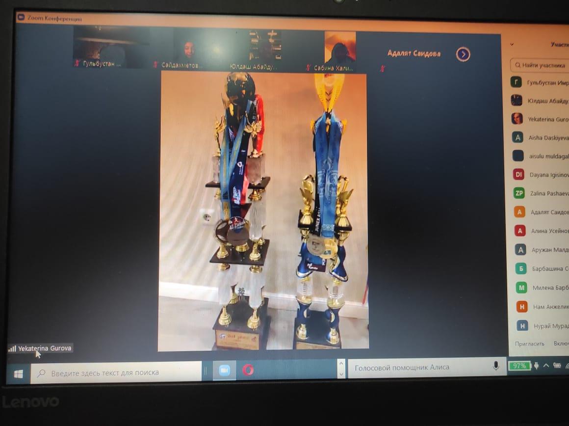 5 января состоялась онлайн встреча с мастером спорта международного класса по каратэ Шиш кекушин Гуровой Екатериной.Она является финалисткой чемпионата мира,6-кратной чемпионкой Азии,8-кратной чемпионкой Казахстана.Катерина рассказала ребятам о своих достижениях,о своих кумирах и учениках.Чтобы стать чемпионом и достичь определенного уровня,нужно упорно трудиться и идти к своей цели.Ребята задавали вопросы,интересовались о техниках каратэ,об истории данного вида спорта.Встреча прошла интересно и продуктивно.