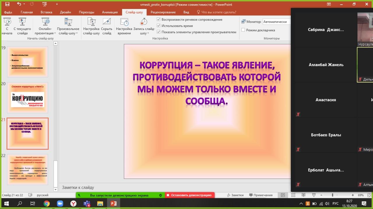 В ОШ№189 прошли классные часы "Молодое поколение страны-против КОРРУПЦИИ!" Целью мероприятия было: Привить подрастающему поколению негативное отношения к коррупционным действиям, научить противостоять коррупции.