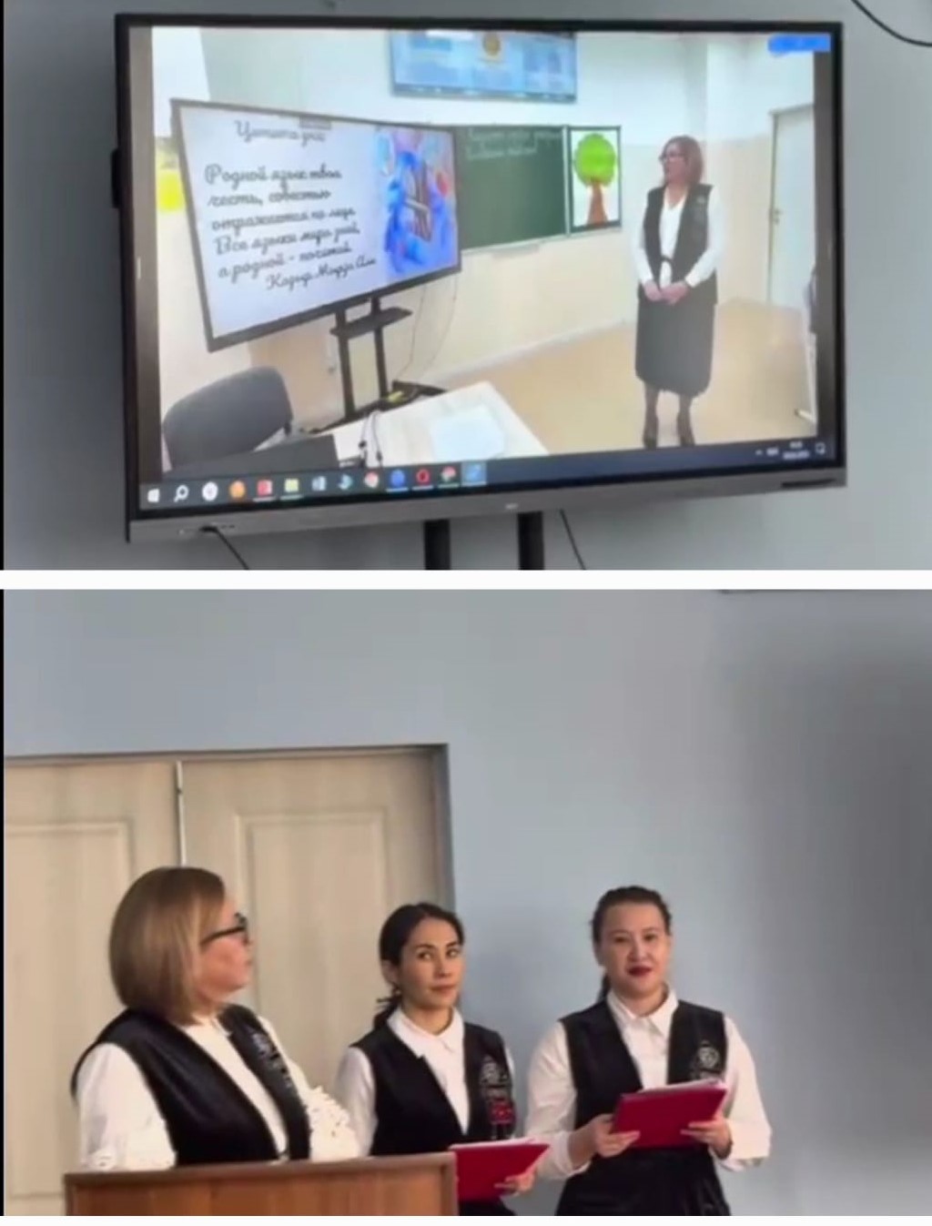 Учитель русского языка и литературы Имранзиева Гульбустан Азатовна представила собственный фрагмент интегрированного урока под заголовком «Выдающиеся личности в литературе Казахстана Қадыр Мырза Әли». В ходе выступления педагог раскрыла методы работы с несплошным текстом и подчеркнула воспитательную функцию урока: формирование уважения к культуре, традициям и истории казахского народа. Особый акцент был сделан на направлении «Біртұтас тәрбие» — единой воспитательной системе, направленной на развитие у школьников патриотизма, языковой грамотности и национального самосознания. В свою очередь, Касымбаева Аида Сейдахметовна выступила с докладом «Семантические и ситуативные особенности перевода Қадыр Мырза Әли», где уделила внимание переводческой деятельности писателя. Особое место заняло обсуждение перевода лирики Сергея Есенина на казахский язык, выполненного Мырза Әли. Педагог отметила мастерство поэта в передаче глубины образов, сохранении авторского стиля и целостности оригинала, а также высокую лингвистическую точность его адаптаций.