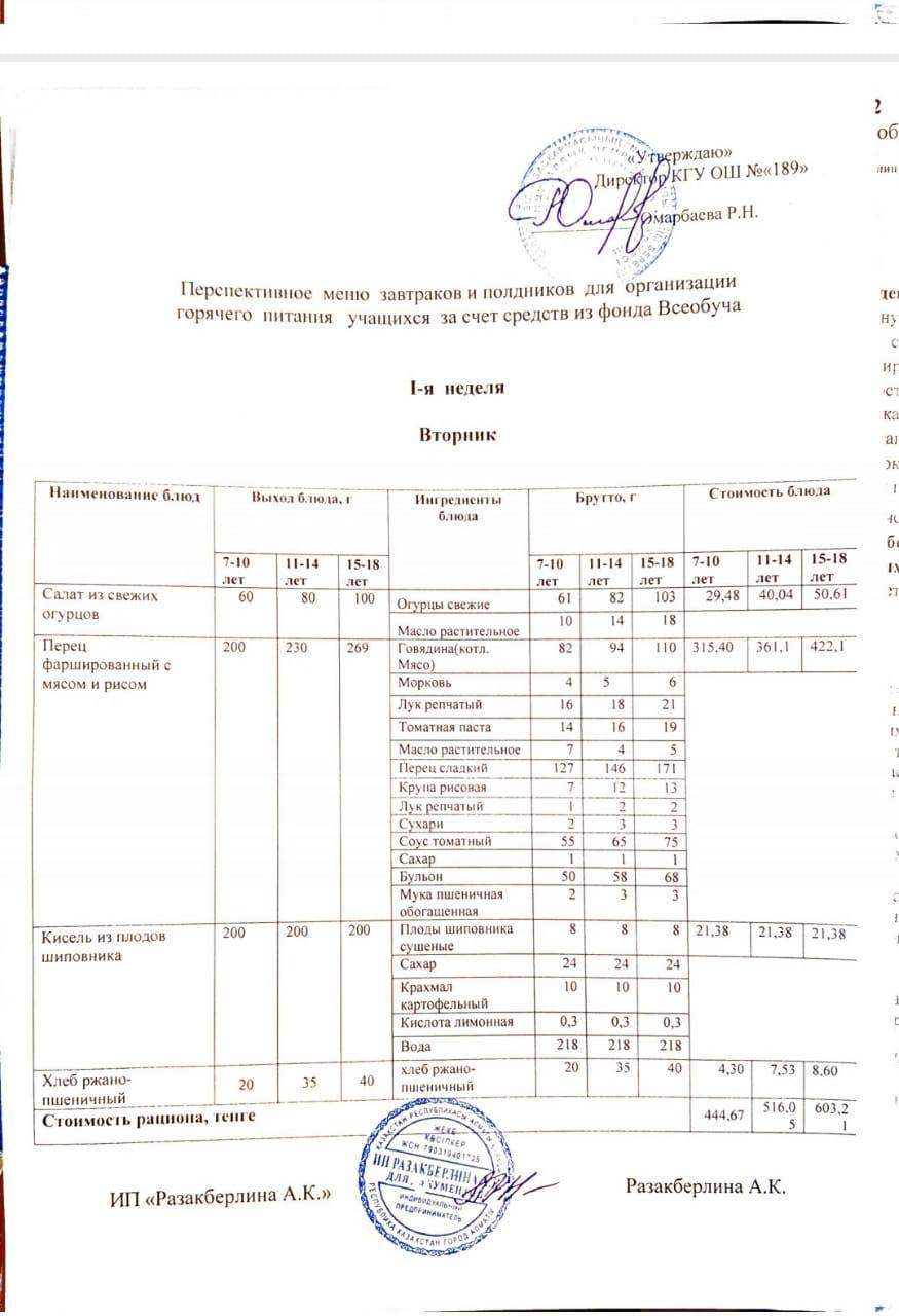 КГУ «Общеобразовательная школа №189» Управления образования города Алматы
